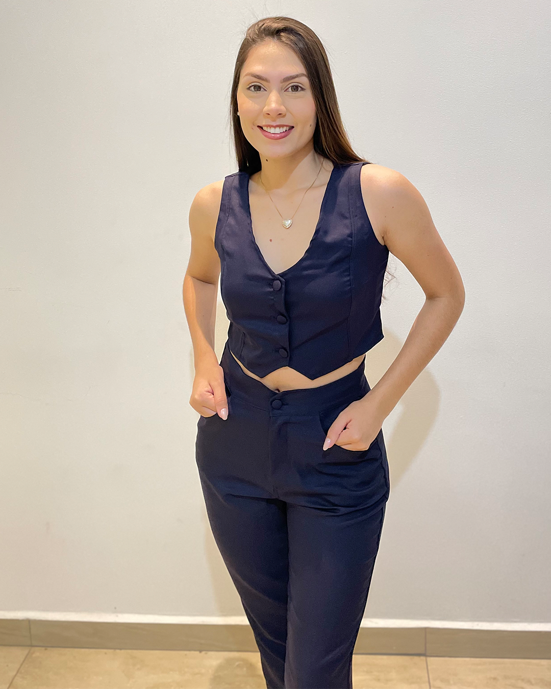 O Colete Alfaiataria Bella pode ser usado como peça-chave para transformar qualquer look básico em uma produção sofisticada. Combinado com uma blusa ou camisa, calças ou saias, esse colete acrescenta um toque de elegância que eleva instantaneamente o visual.