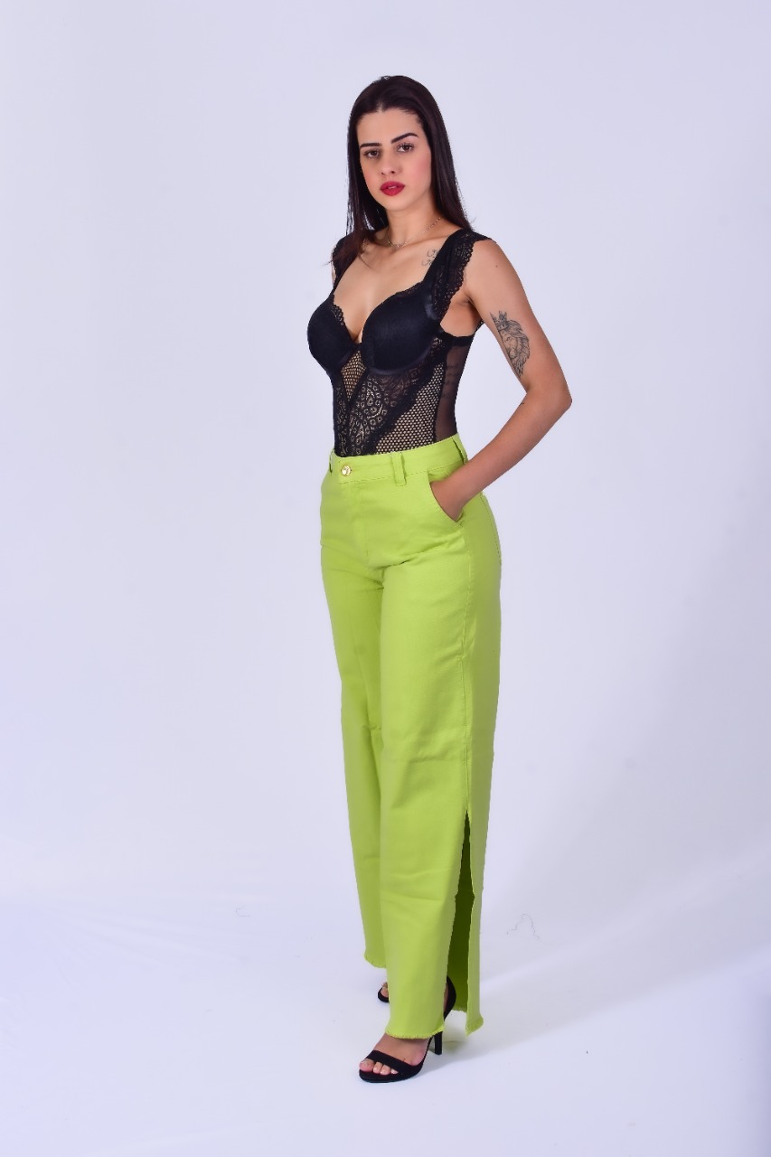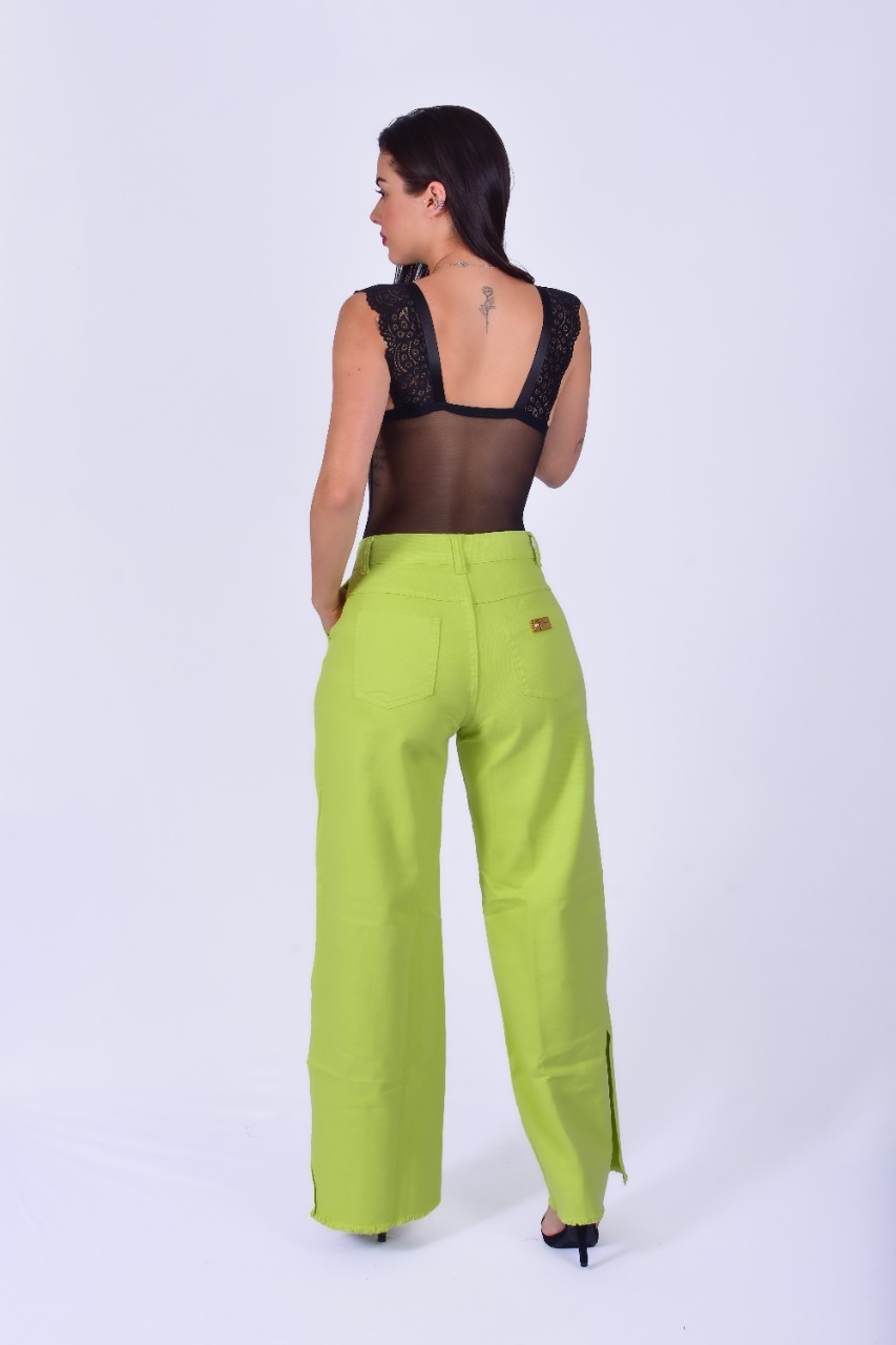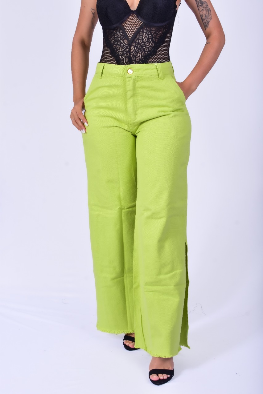 CALÇA PANTALONA FENDA LATERAL VERDE LIMA