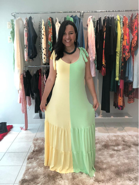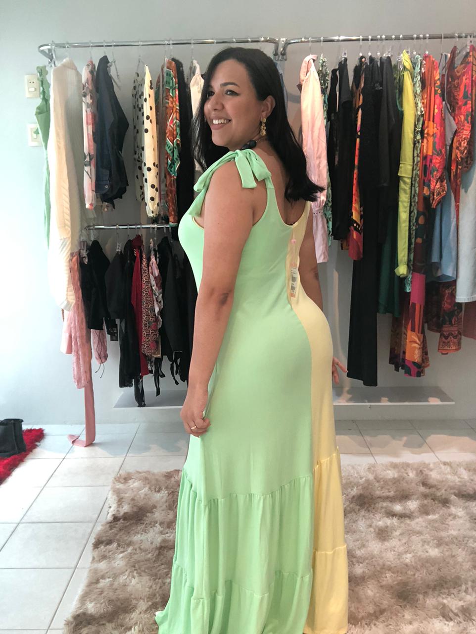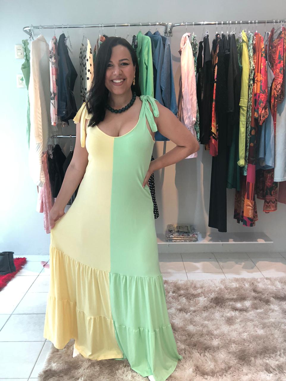 CONFECCIONADO EM VISCOLYCRA LIGHT NOSSO VESTIDO BICOLOR TE PROPORCIONA UM LOOK LEVE E SOFISTICADO, COM CORES SUAVES E TIPICAMENTE BRASILEIRAS.